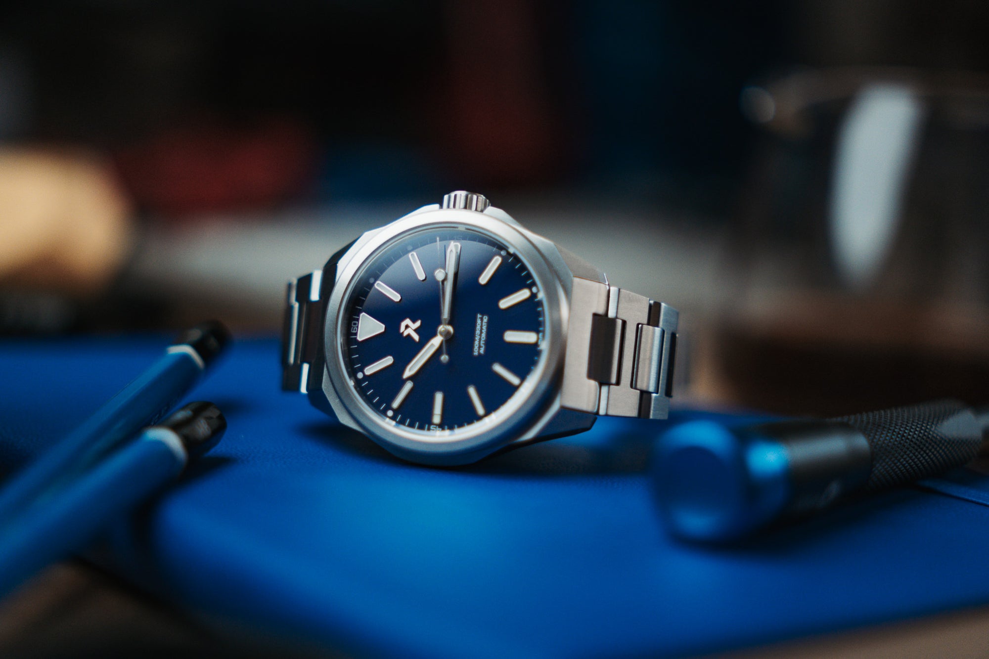 - Heated-Enamel dials with applied indexes and RZE logo