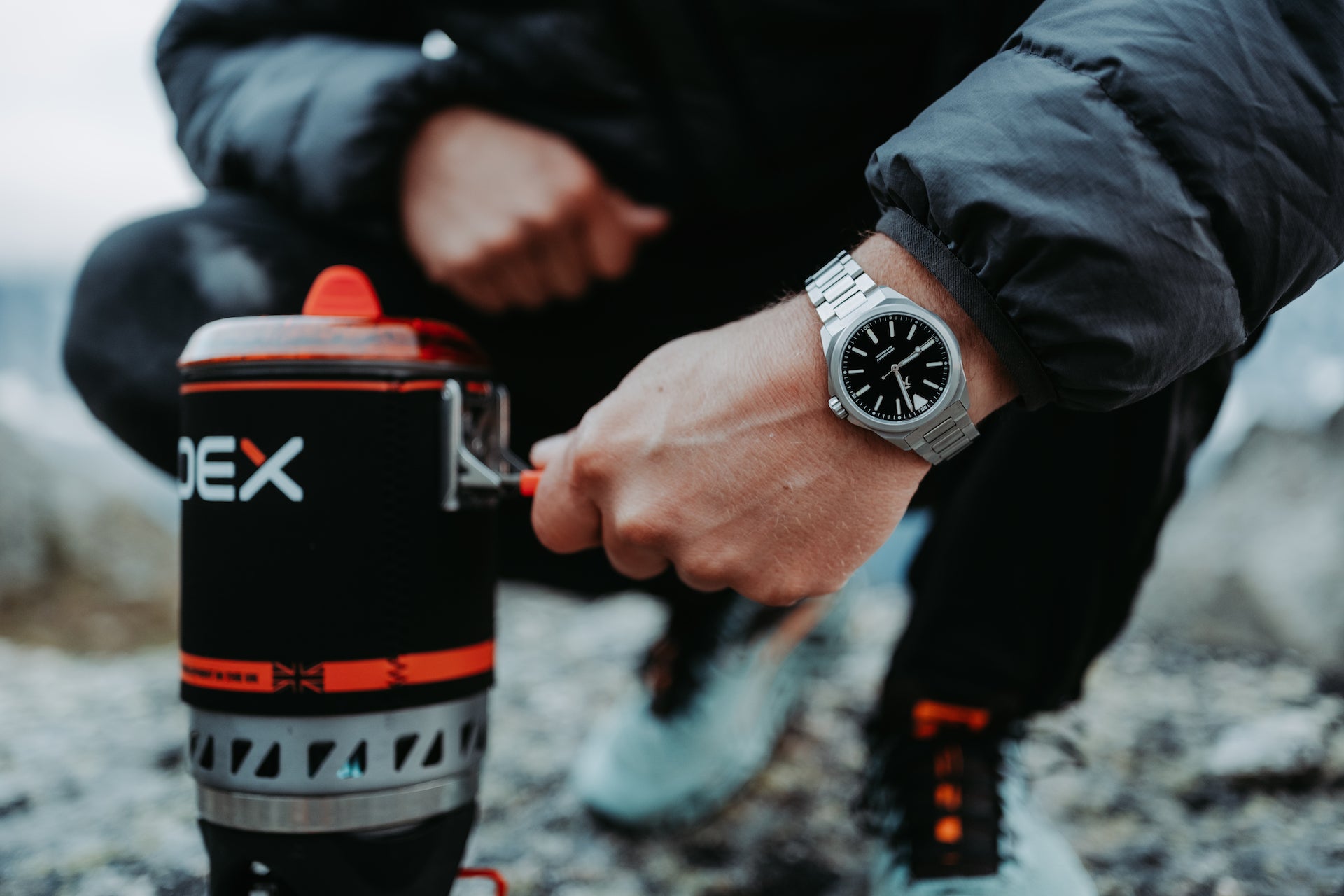 Celebrating five years of adventures, the enamel dial Resolutes are the most refined iteration of our titanium field watch that started it all. Crafted from ultra-durable, lightweight titanium, beautifully brushed and coated with our proprietary UltraHex™️, the Resolute features an upgraded bracelet with 'on-the-fly' micro adjustment and a breathtaking black enamel dial. Adding interest and depth, you'll be mesmerized by the applied logo and polish on the handset and indices, bringing an elevated level of craftsmanship to a tough titanium tool watch.