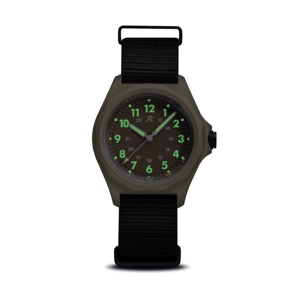 - Double pass nylon strap with DLC coated titanium hardware