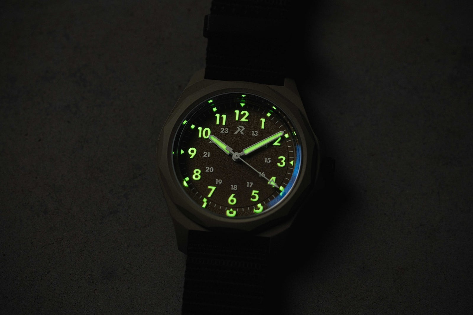 - Sand textured dial with 3D-embossed numerals