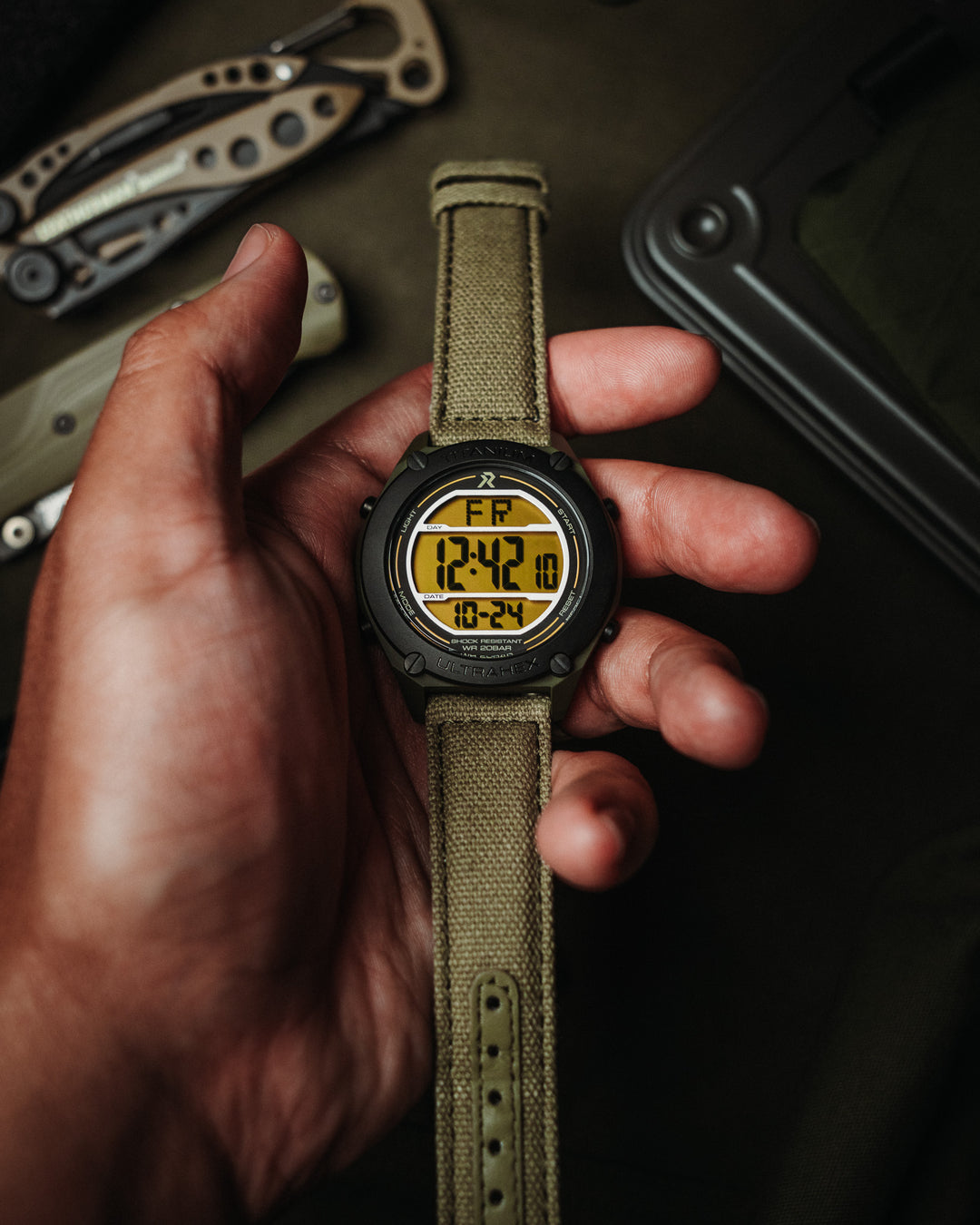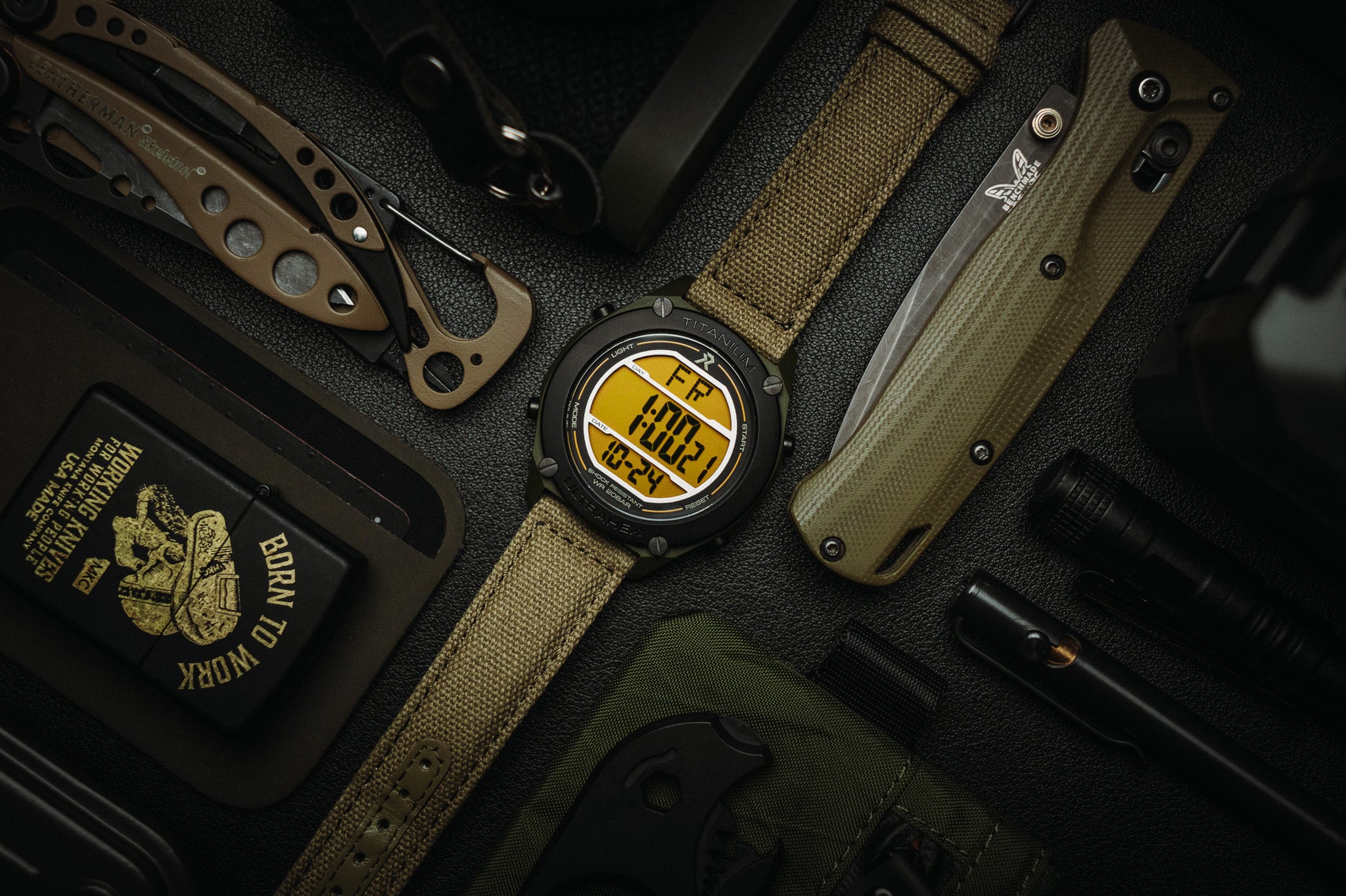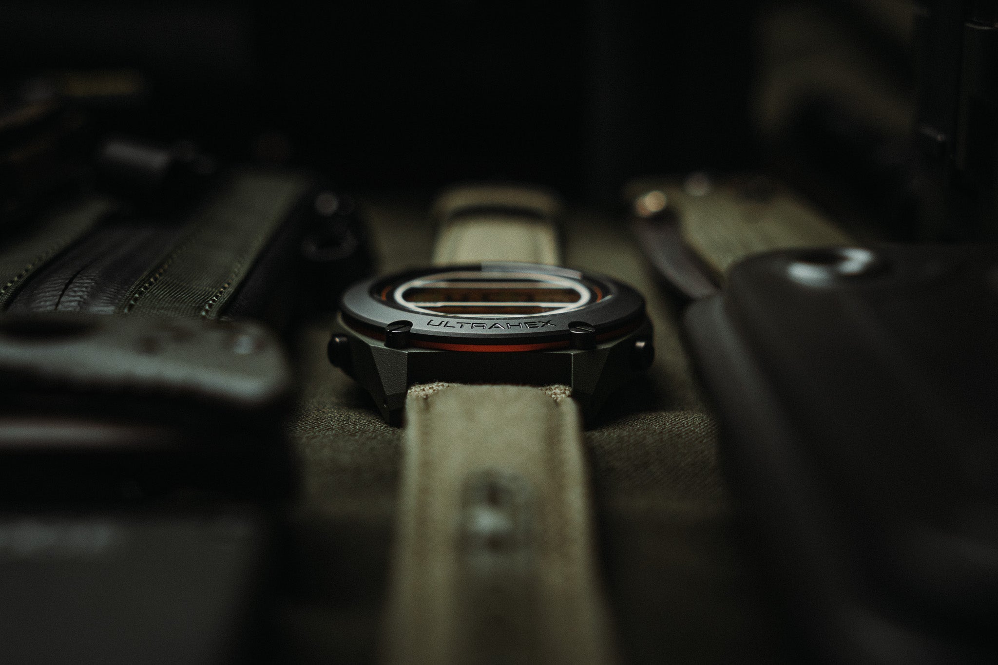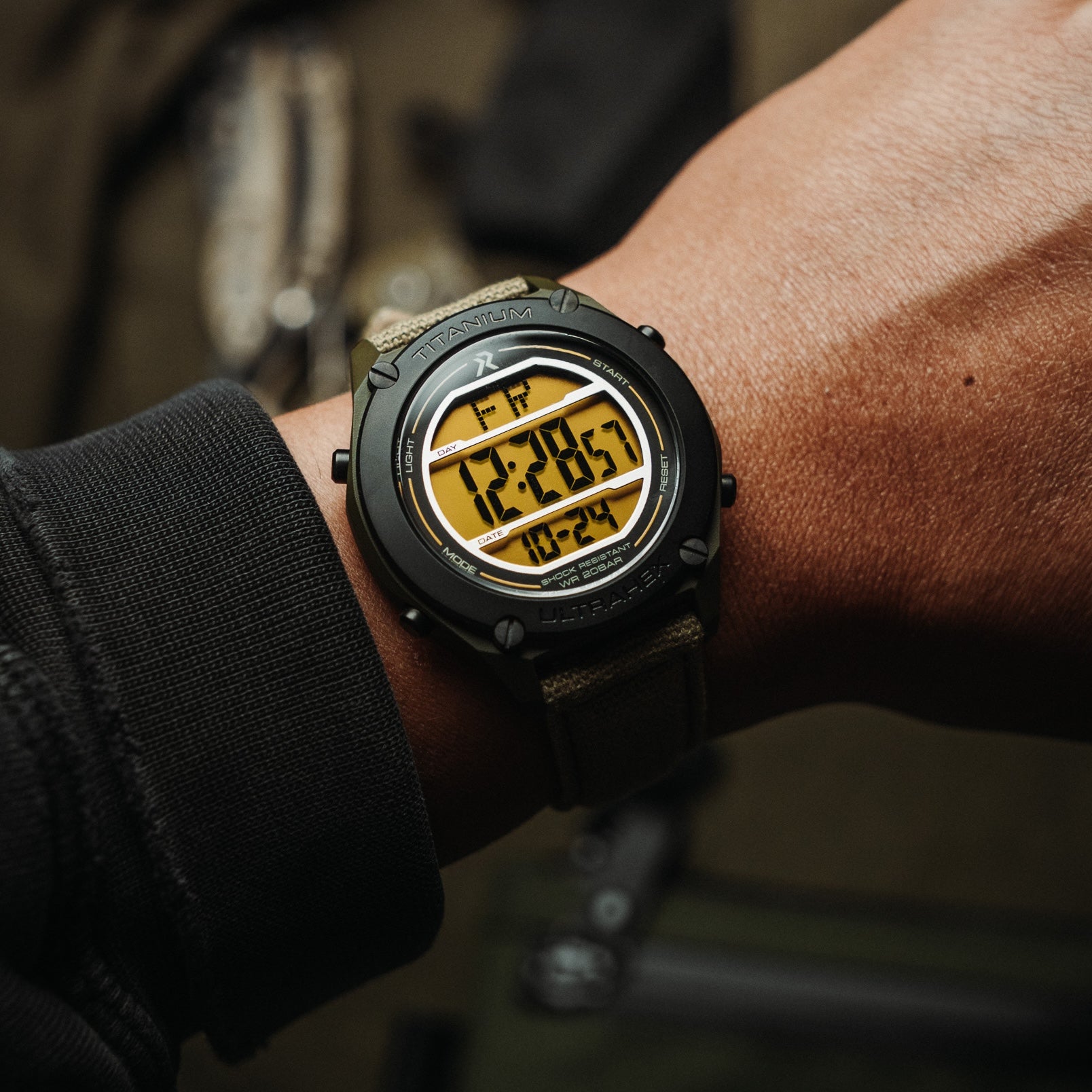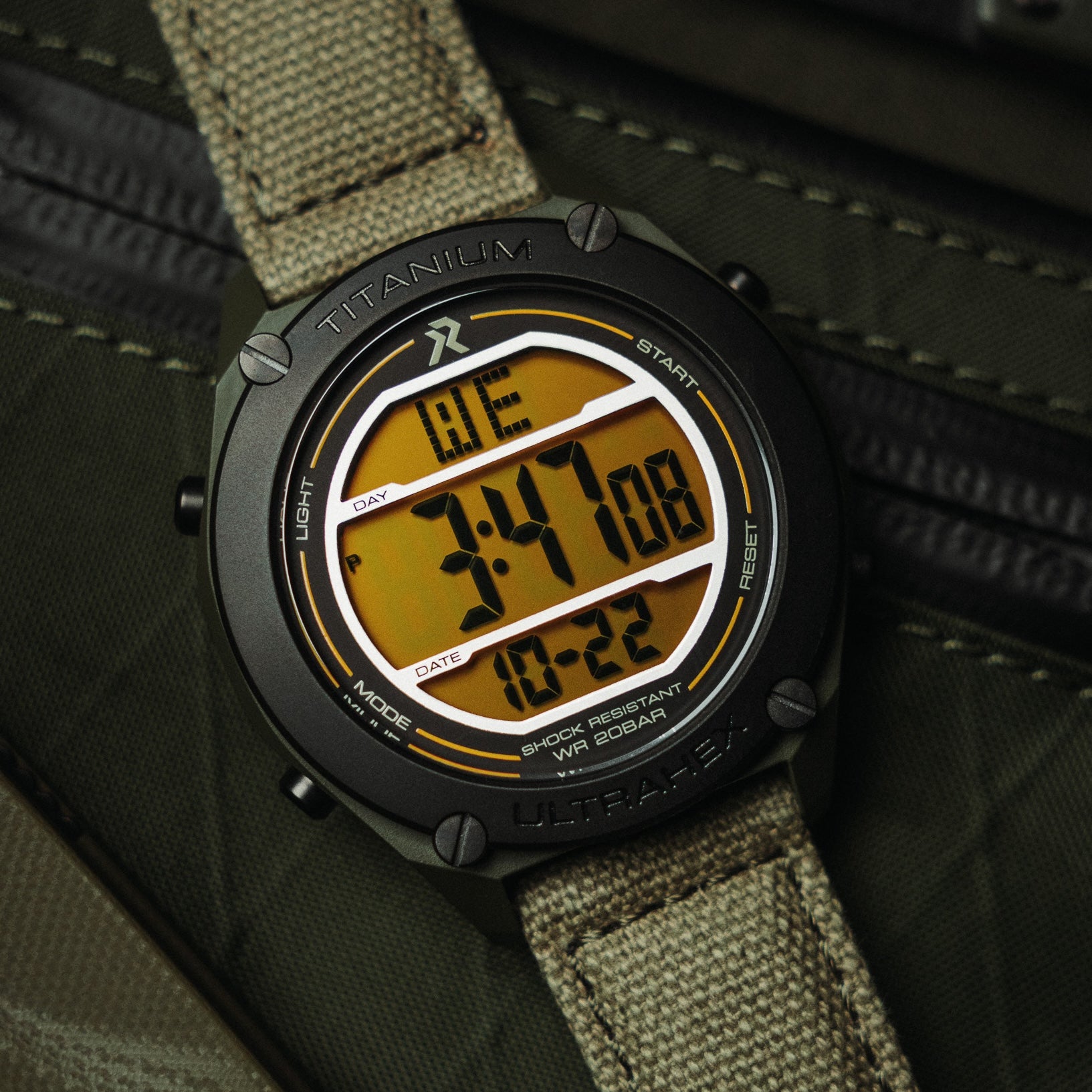 After five years of developing our expertise in titanium tool watches, RZE sought to meet the demands of everyday adventurers requiring shock and vibration resistance that could only be delivered by a digital module. There is no better combination for a stealthy loadout than blacked out DLC with an exceptionally legible high contrast display.