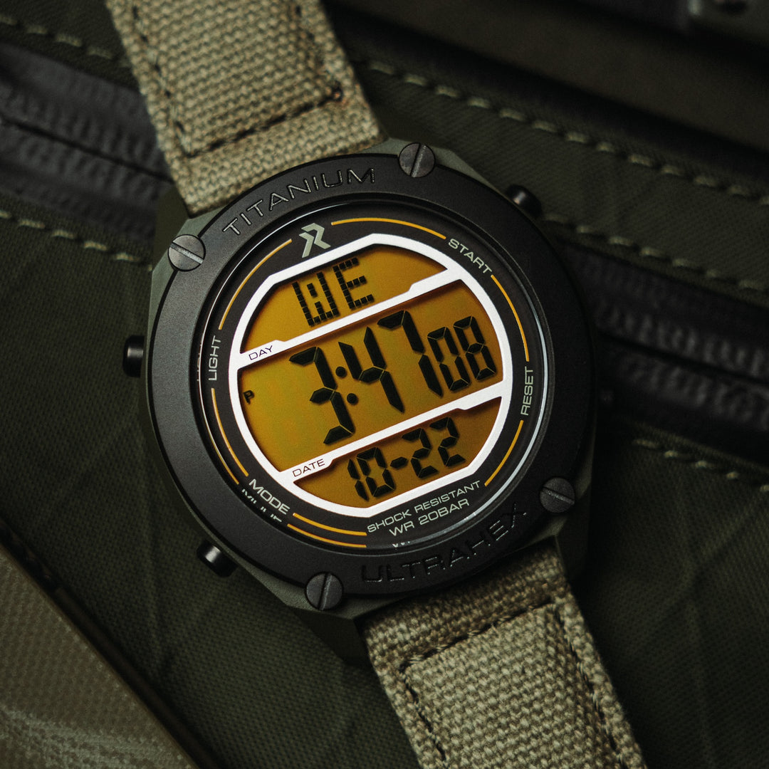 UltraHex™ Titanium Digital (UTD) is RZE's debut digital collection, resistant to water, dust, corrosion, scratches, shock, vibrations, and featuring an advanced custom module, fully operational even while the watch is fully exposed to extreme temperatures.