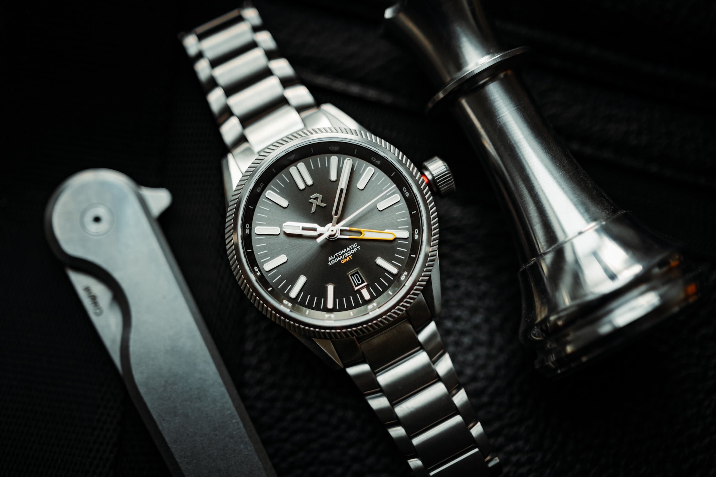 The Fortitude GMT maintains the aesthetic of RZE’s original professional pilot’s watch, featuring a jet turbine inspired bezel, screaming to take off with a full flight of upgrades. The premium Miyota 9075 movement offers more than a complication, enabling us to make the case 1mm thinner. Along with the arrival of our on-the-fly, adjustable buckle and quick release lugs to the Fortitude GMT, it's been optimized for comfort and is more versatile than our travel plans.