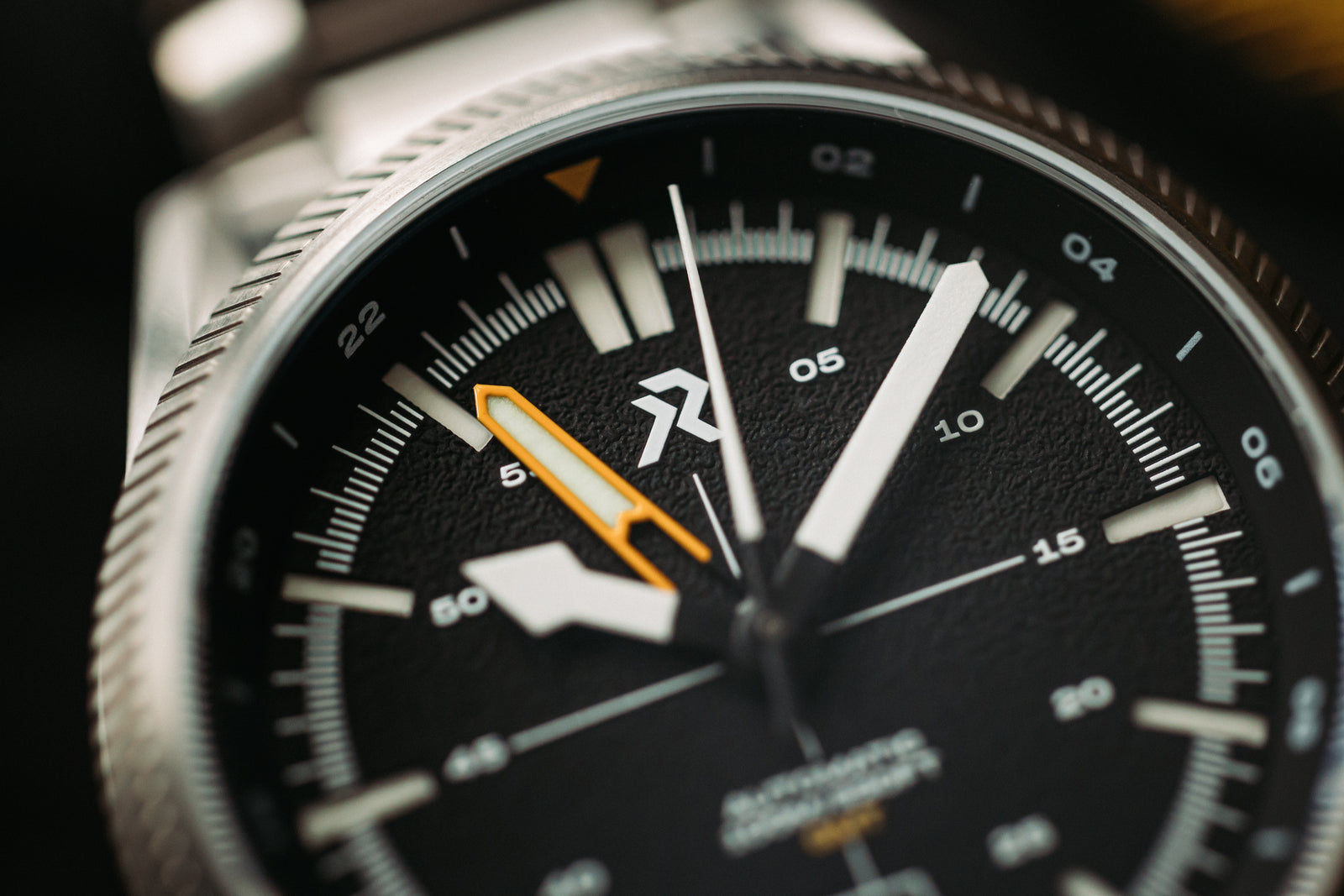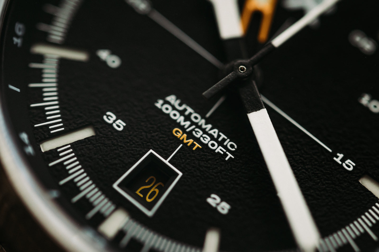 One glance at the Fortitude GMT and you'll know why it's the pilot's watch. Featuring a jet turbine inspired bezel, signature hands & indexes, a sandwich dial with generous lume, and an extra-large crown, whether you're in the cockpit, jump seat or backseat, you'll always know when it's time for take-off. Prioritizing legibility, the custom handset for ‘local time’ and a prominent ‘home time’ hand ensures you'll never lose a minute crossing borders or timezones.