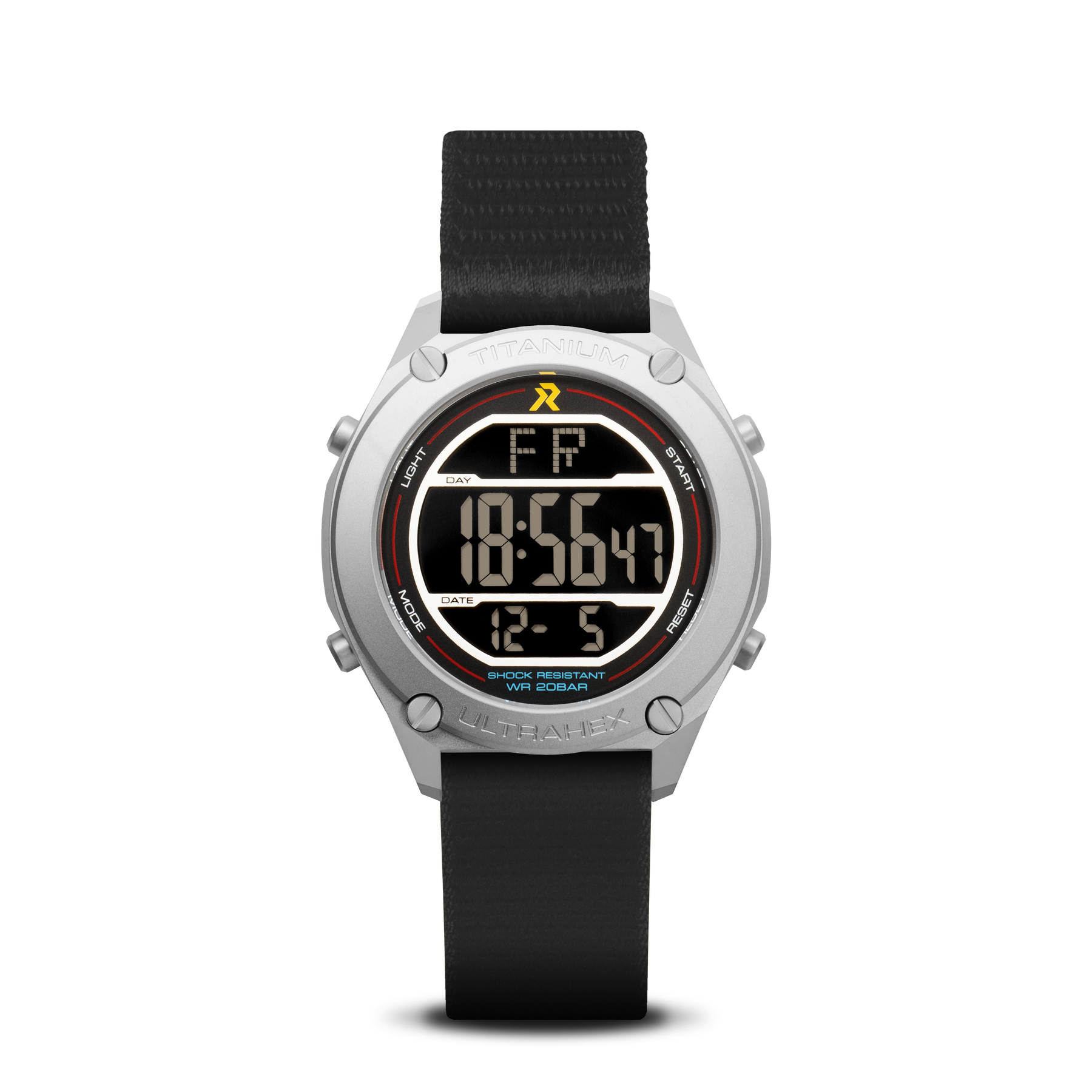 Designed and tested in the harsh environment of the Canadian North, the UltraHex™ Titanium Digital (UTD) is resistant to water, dust, corrosion, scratches, shock, vibrations, and featuring an advanced custom module, fully operational even while the watch is fully exposed to extreme temperatures.